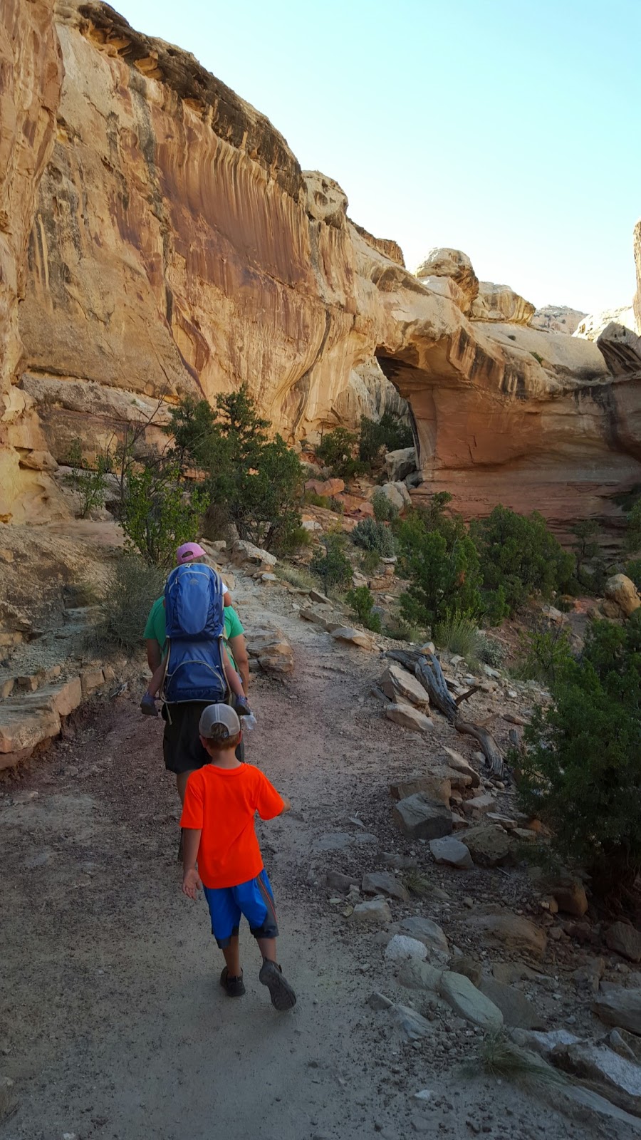 Just past the Petroglyphs lies the Hickman Bridge Trailhead. It was one of my favorite landmarks of the entire vacation. The hike was a little more difficult for our children to handle. We had to take lots of breaks, drink lots of water, and eat lots of snacks, but we made it to the famous Natural Bridge and enjoyed ourselves along the way.